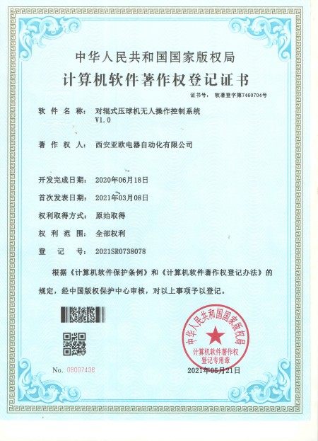 - 關(guān)于我們 - 資質(zhì)榮譽(yù) - 對輥石壓球機(jī)無人操作控制系統(tǒng)
